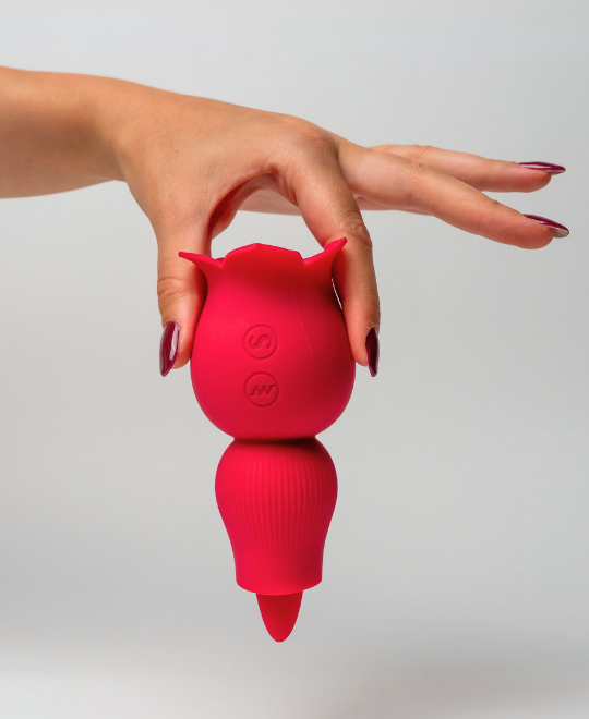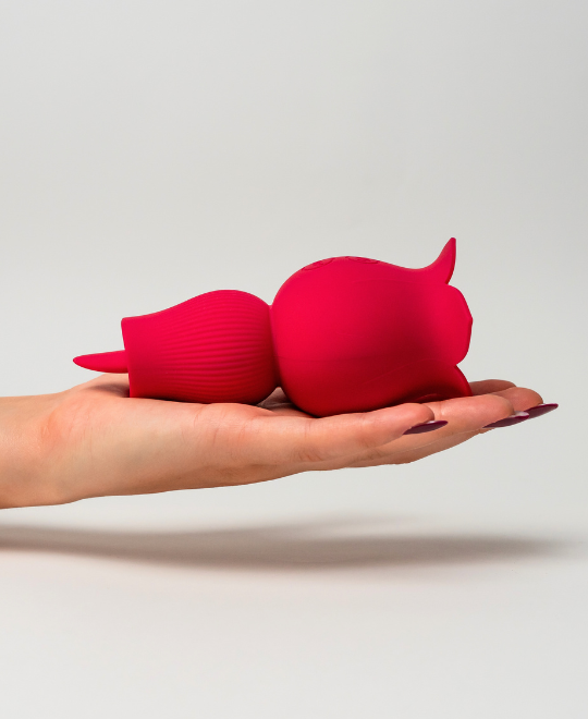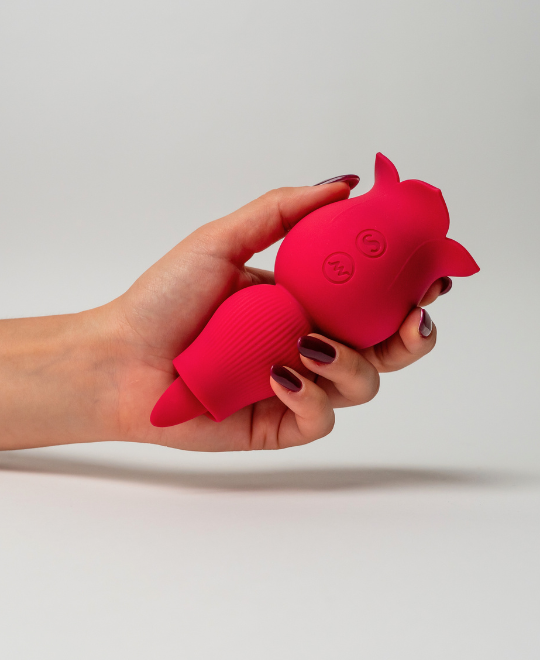 Realizzato in silicone vellutato, accoglie tra i suoi petali una linguetta rotante che imita la stimolazione orale e una tecnologia di suzione pulsata per colpire con precisione il clitoride.